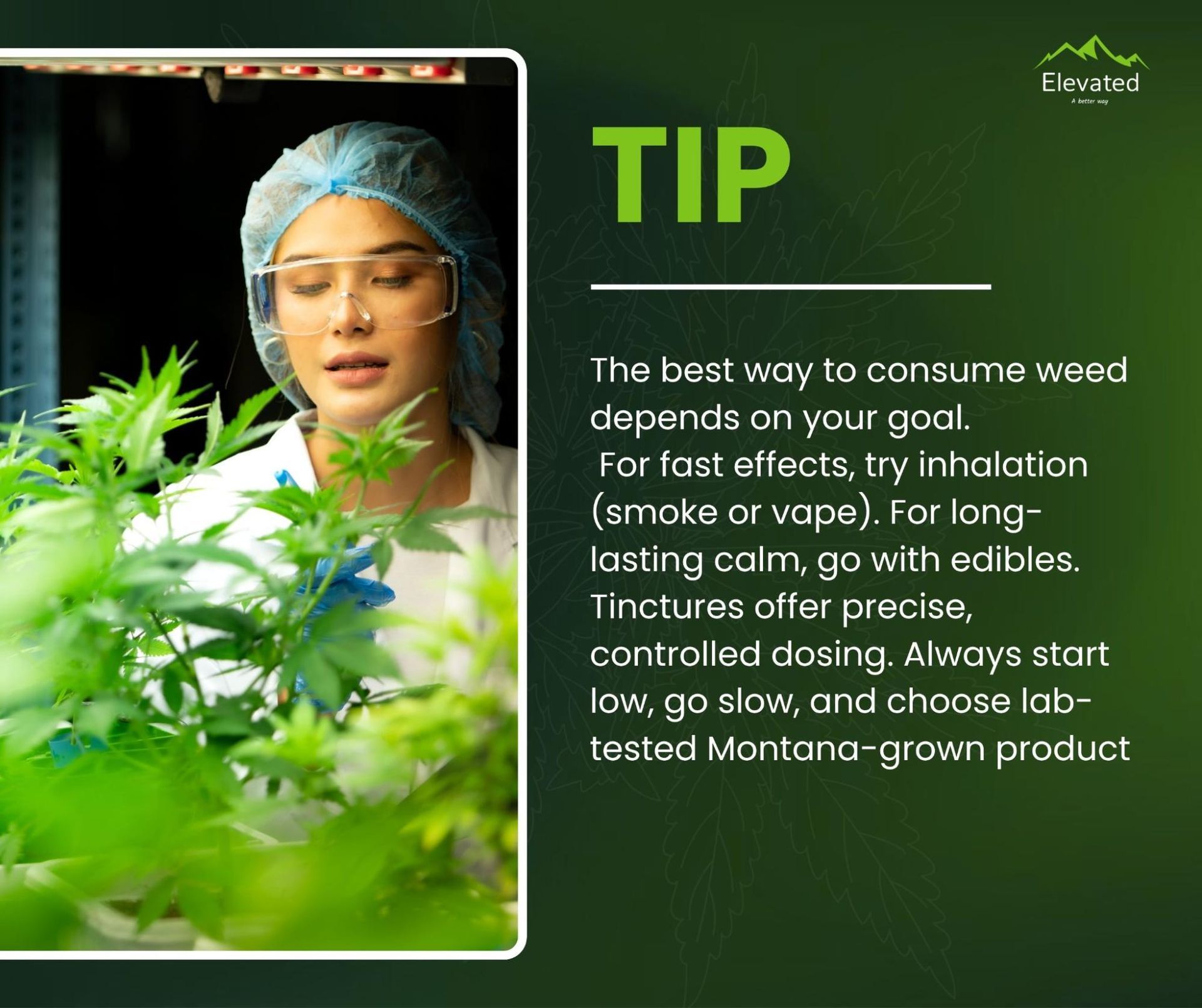The best way to consume weed depends on your goals. Smoking offers fast relief, edibles give longer effects, and vapes provide control and flavor. At Elevated Montana, all products are locally grown, lab-tested, and guided by expert budtenders to help you find your perfect balance.