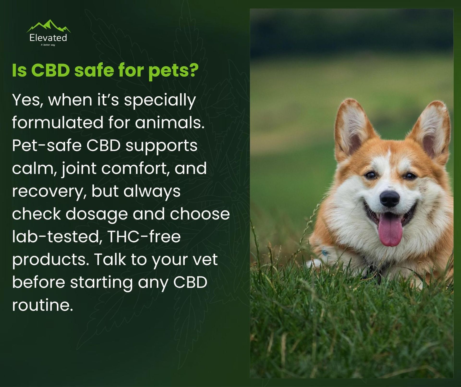 CBD helps pets by supporting their endocannabinoid system, easing anxiety, improving mobility, and promoting better rest. Elevated Montana offers lab-tested, THC-free CBD products, backed by local trust and informed dosing guidance.